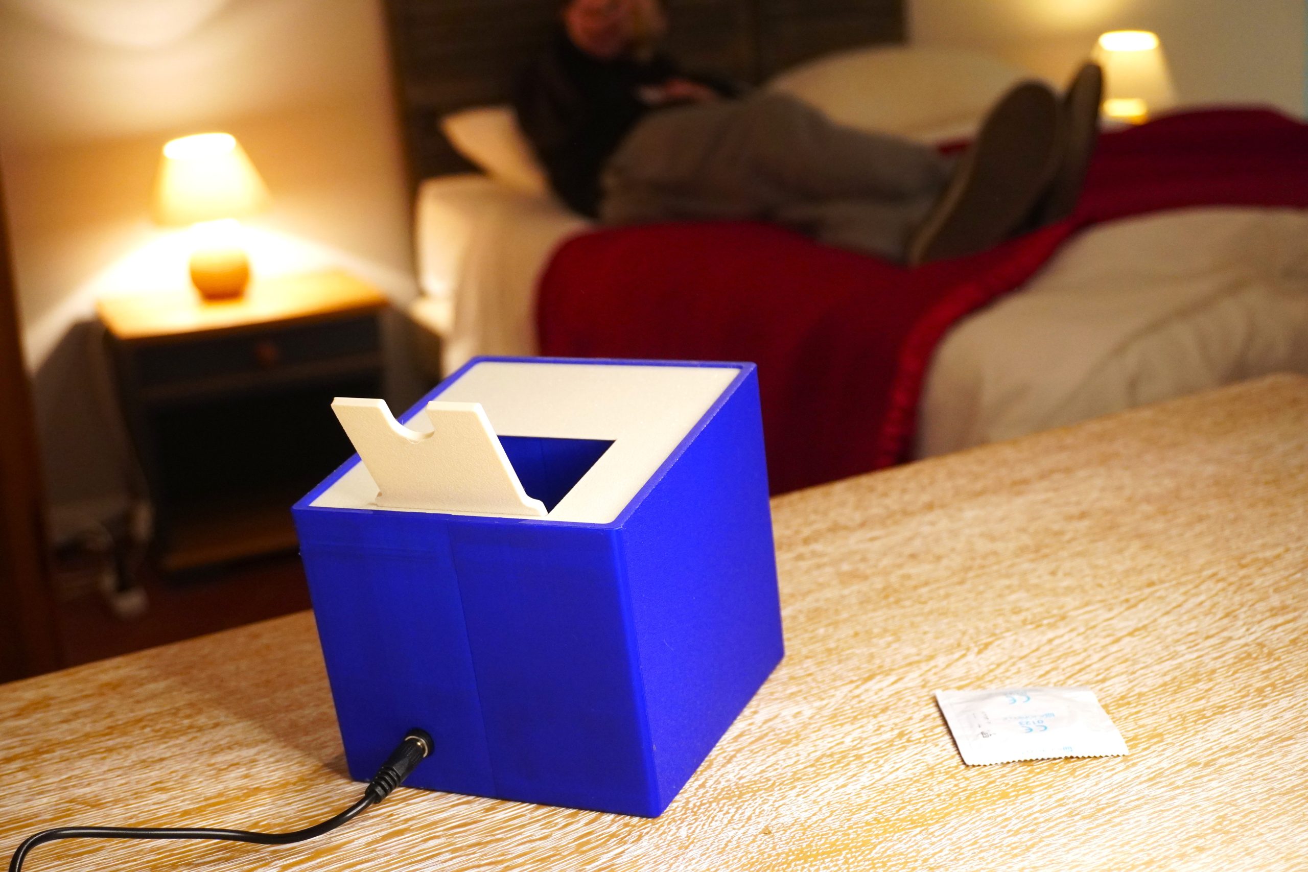 Compact et télécommandé, il est fourni avec sa télécommande et son alimentation. Il s’adapte à la majorité des préservatifs et dispose d’un réservoir pouvant contenir jusqu’à 12 capotes.